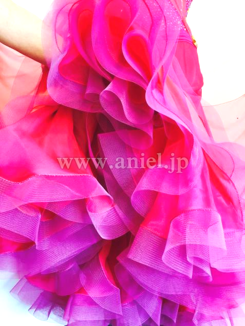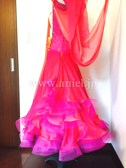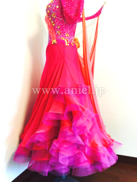 また海外選手のスポンサードレスとして作られたので、ファブリックもストーンも上質で豪華なドレスです。