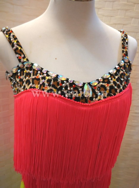 レオパード柄のボディの上にフリンジが段に重ねられていて踊るとよく動きます。
