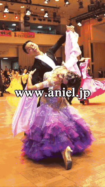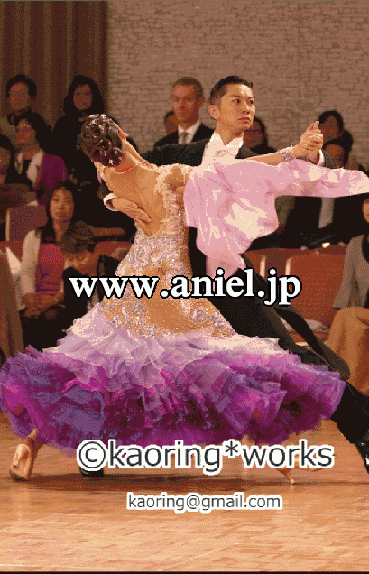 白のレースで覆われたヌーディーなボディと紫のグラデーションになったスカートがフロアでよく目立ちます。エレガントでゴージャスな雰囲気のドレスです。