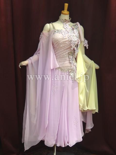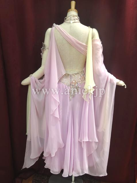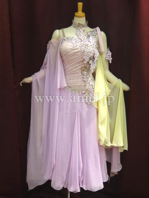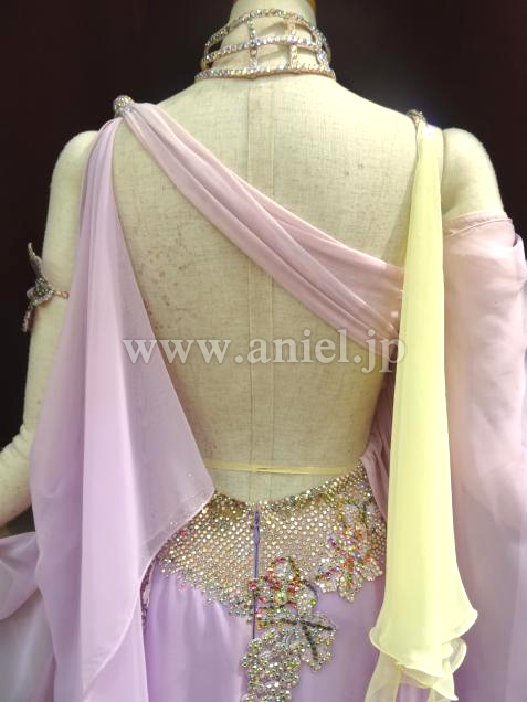 美しいラベンダーカラーとクリームイエローのフロートとのバランスがよく上品に着こなせます。