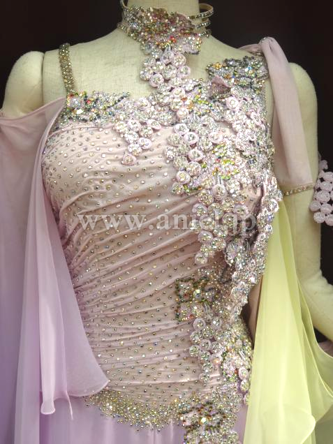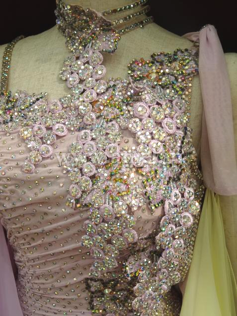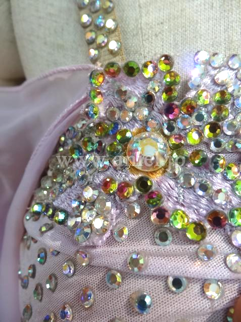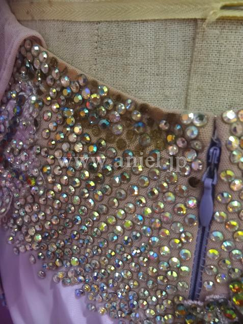 ボディはモチーフレースとストーンがびっしり貼られています。