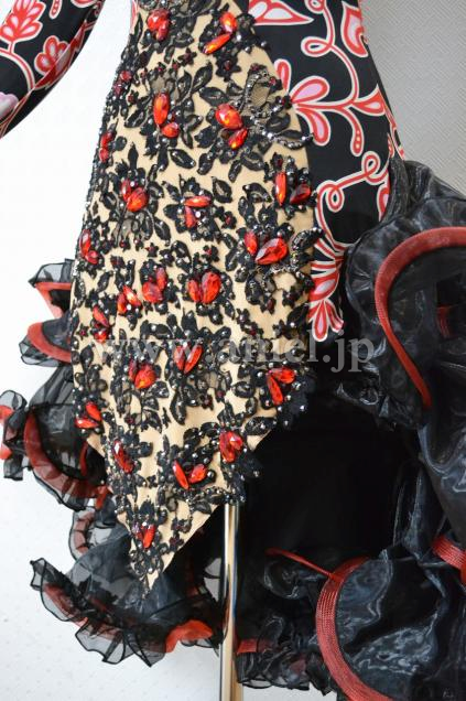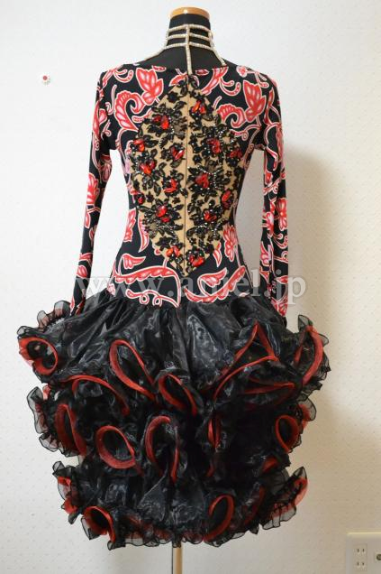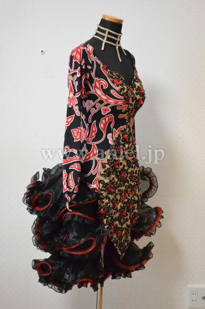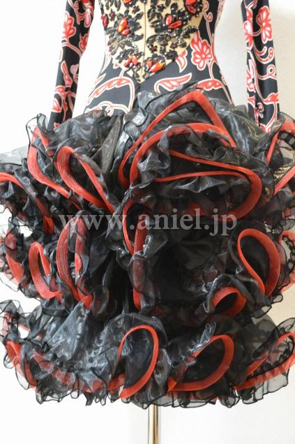 ★前後違いデザインでインパクト感UP!前面はシャープにVラインカット、後ろはフリルたっぷりなディヤード仕上げ、サンバ&チャチャにぴったり(^^♪