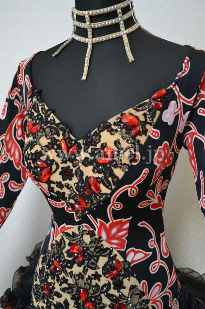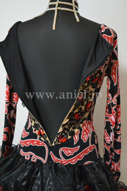 生地→★黒に赤い葉っぱ模様のライクラ生地を使用;