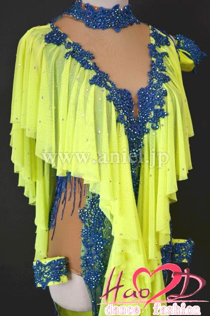 生地→★フリル部分は明るい黄緑色のメッシュ生地を使用し、ほど良い重みがあって良く踊る;