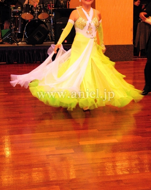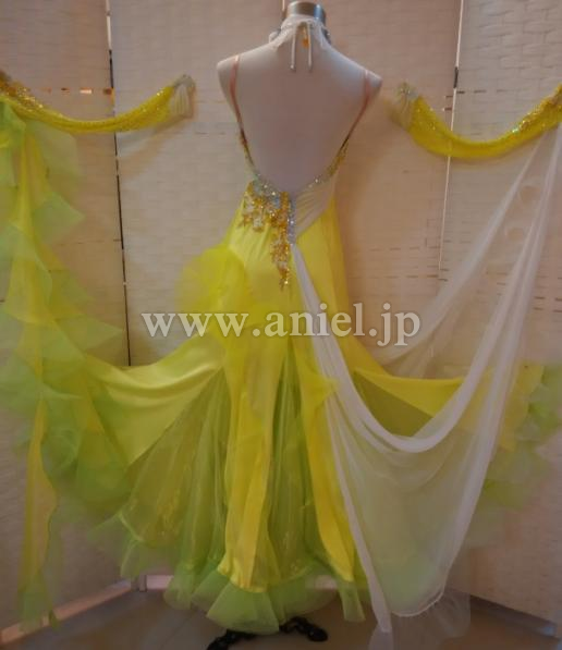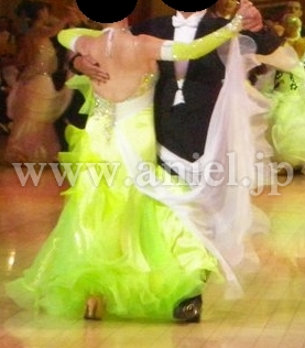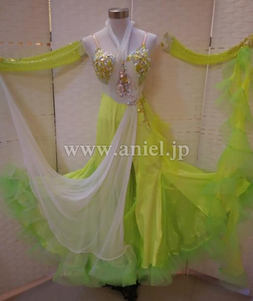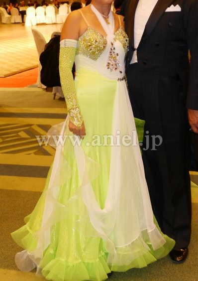 イタリアの高級メーカー、サピエルのエレガントな黄緑のドレスです。