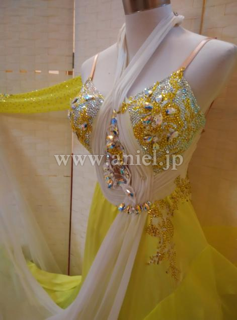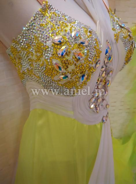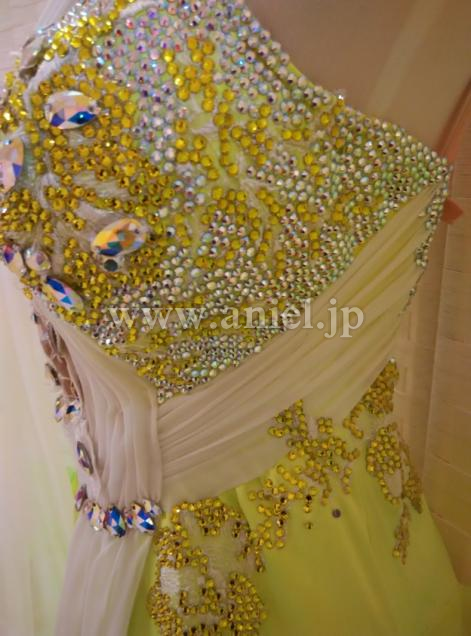 胸元はスワロフスキーストーンがびっしり貼られ非常に豪華です。