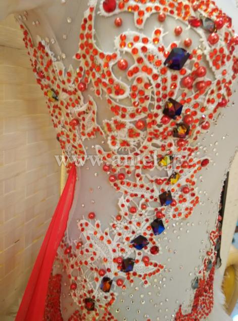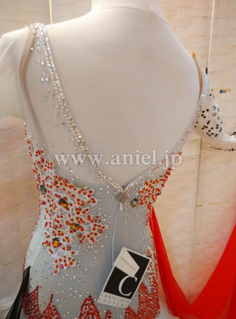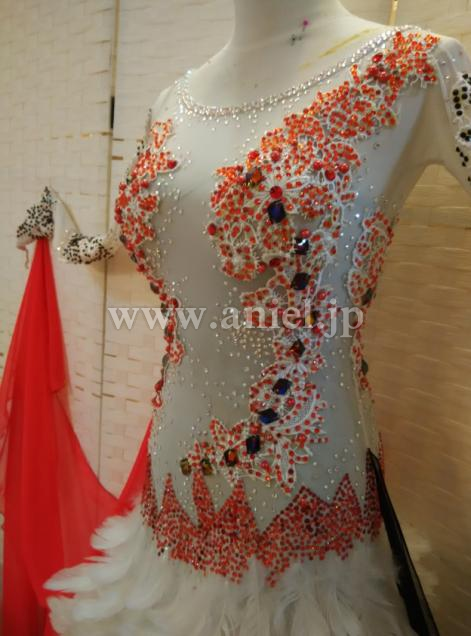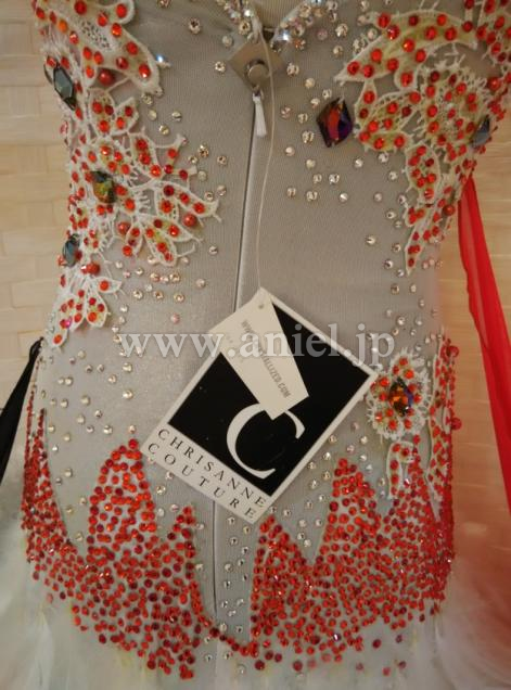 白のボディに黒と赤のフロートがコントラストとなっているドレスです。