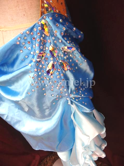 ボディやモチーフレースにはスワロフスキーストーンがたくさん散りばめられ華やかです。
