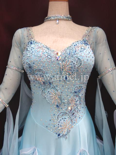 ボディはモチーフレースやストーンで装飾されています。