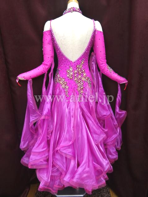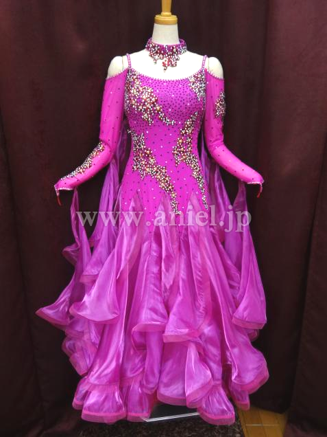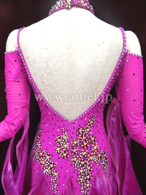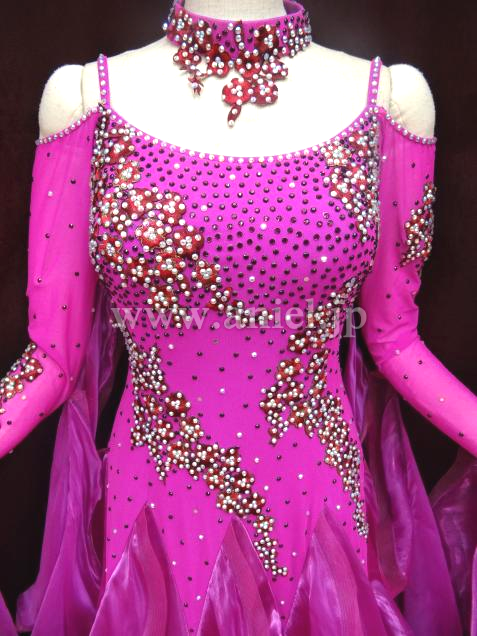 鮮やかなディープローズカラーがフロアーに映えます。袖にも刺繍してあります。スカートは良く踊ります。