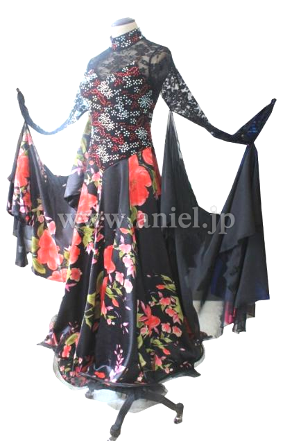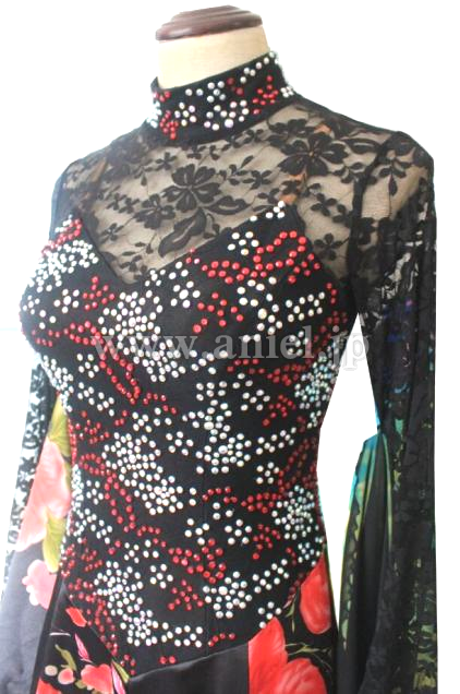 タンゴにぴったりな一枚、袖に縫い付けたフロートを外して、スナップで留めるように付け直して頂ければカッコいいパソドレスに変身♪