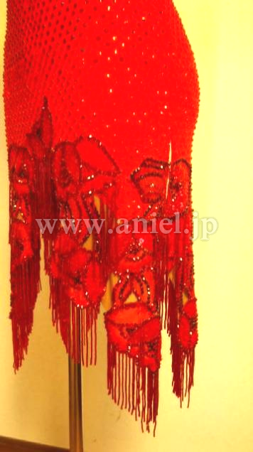 ビーズフリンジで 裾のカットも素敵です 短かめのグローブが一つ付いてます