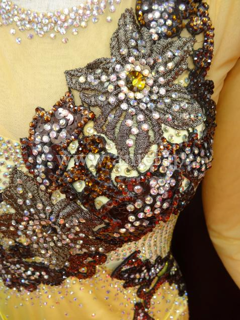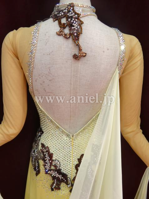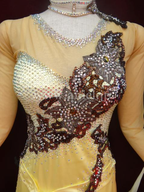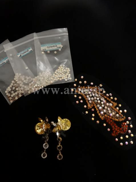 ボディにはストーンがびっしり貼られたEdda Hsuらしいデザインで、ブラウンのモチーフレースが上品に装飾されています。