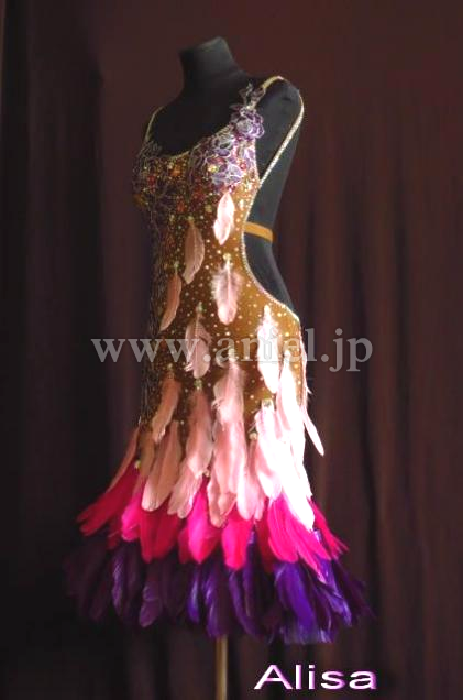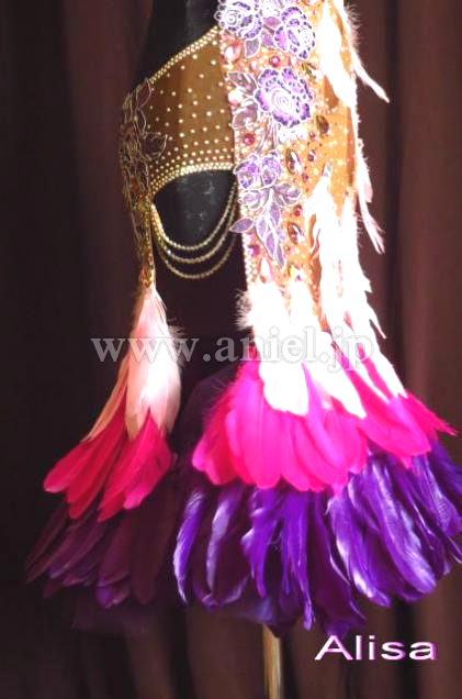 薔薇のモチーフ、ストーンと羽根使いがラブリーなドレスです。