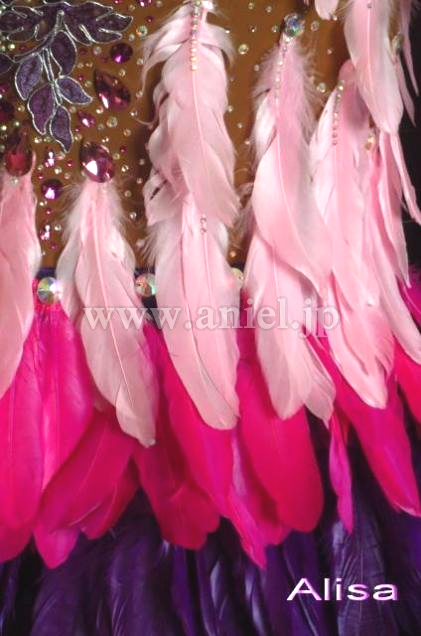 スカートは3色でグラデーションになっている羽根が広がるようにつけられています。