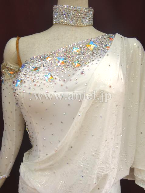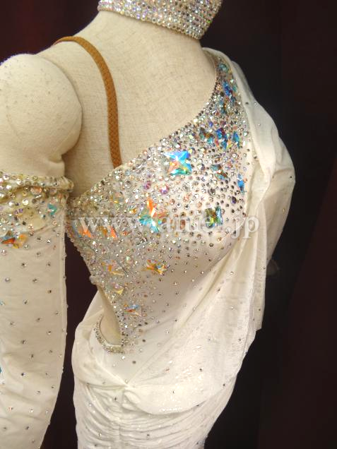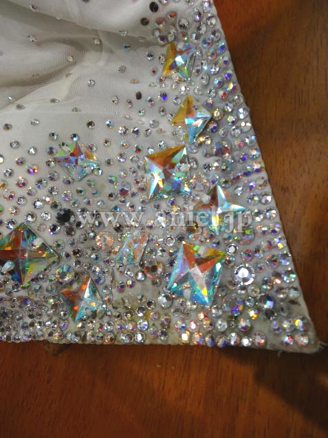 胸元やボディはスワロフスキーストーンがたくさん散りばめられよく輝きます。