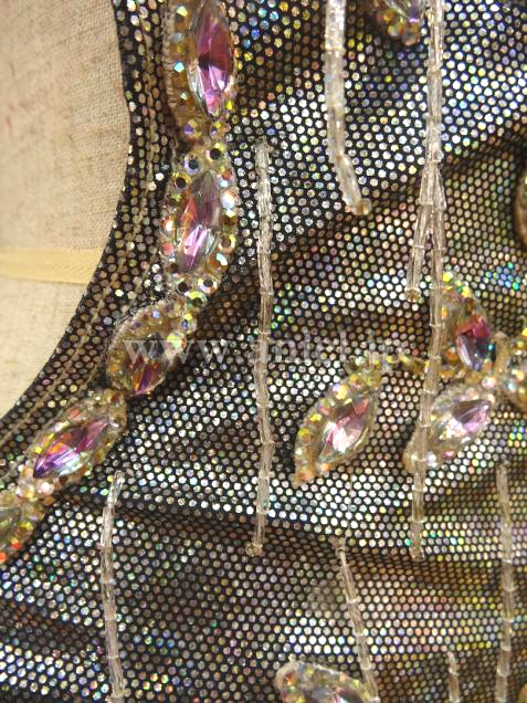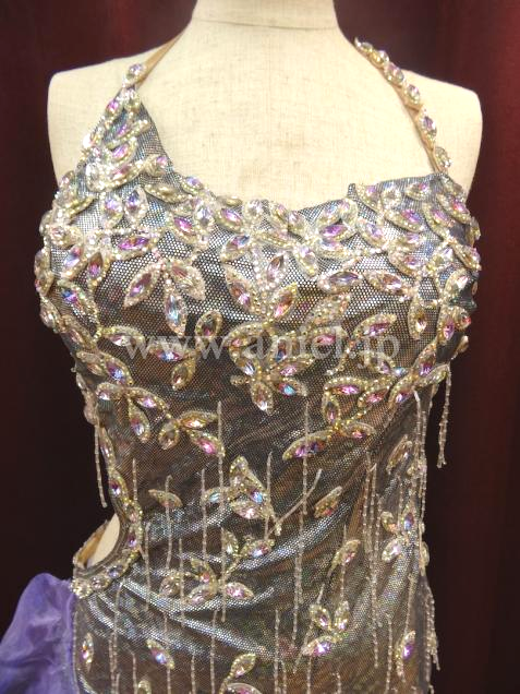ボディは草花模様に竹ビーズが縫い付けられ、