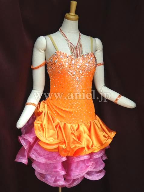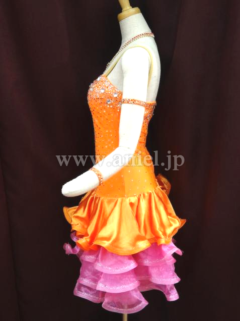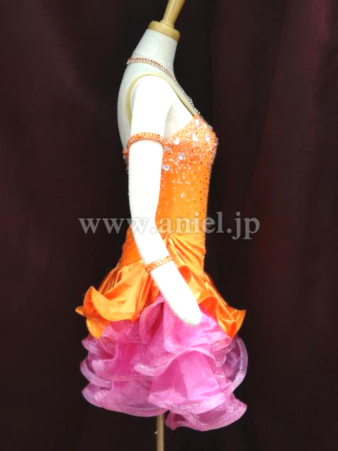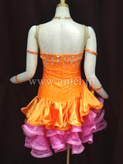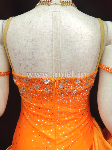 スカート部分が4段になっていてとても可愛らしく、またドレスが軽くてよく踊ります。ボディはたくさんのストーンで飾られています。