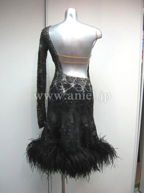 フレアスカートの裾には羽根が飾られ、踊ると大きく踊ります。