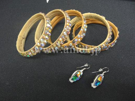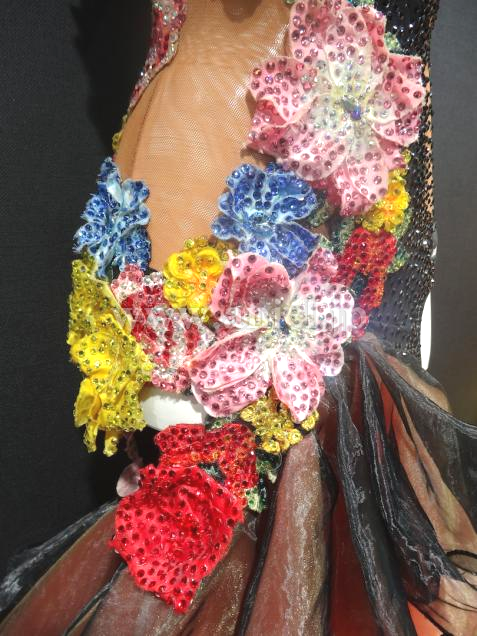 スワロフスキーラインストーンの補充、花びらのほつれのカットなどのメンテナンスを行ない、背中にゴムを1本縫い付けました。