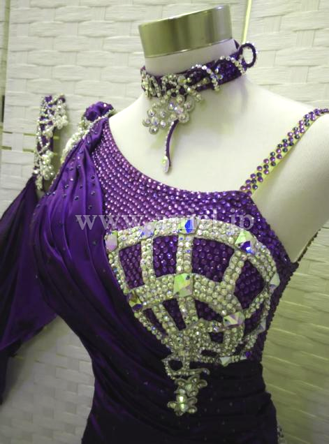 美しく上品な紫のカラーにシルバーの扇形モチーフが胸元とヒップに施された個性的なデザインです。