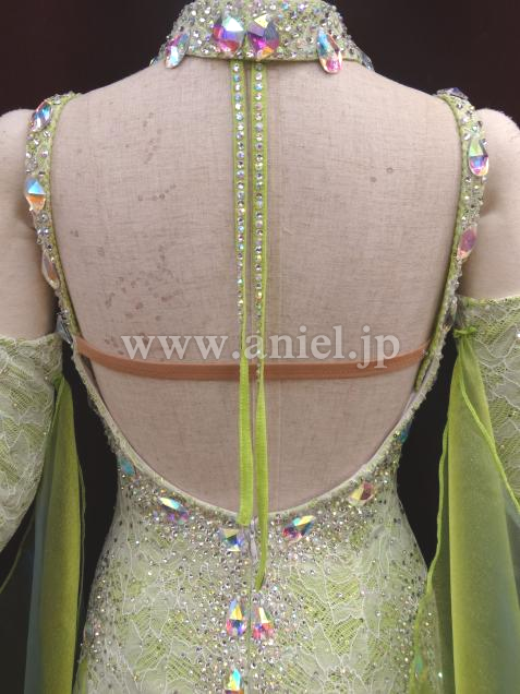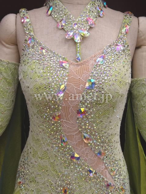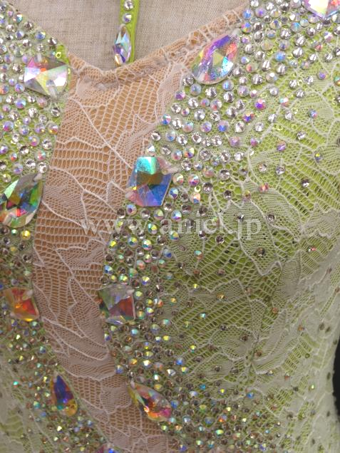 ボディはレース生地にストーンが散りばめられていて華やかです。
