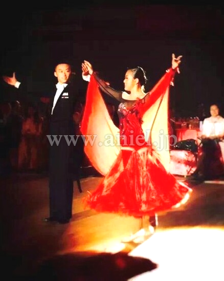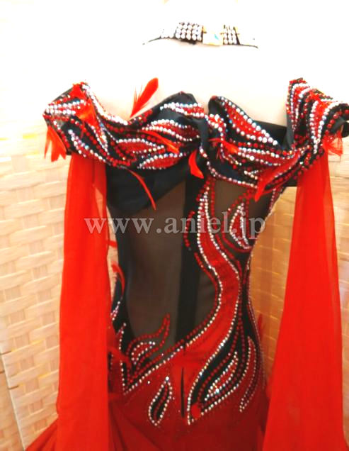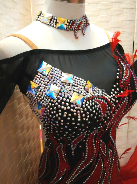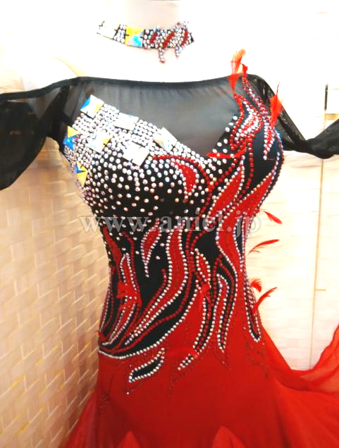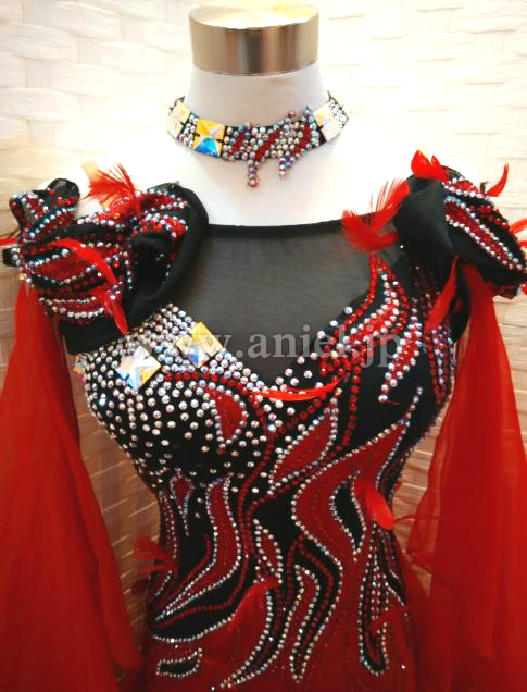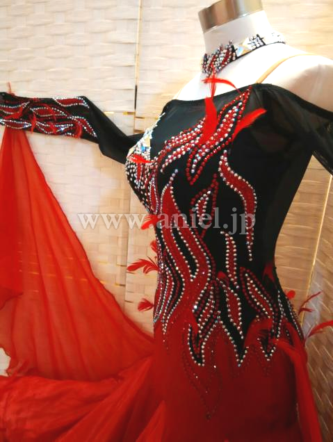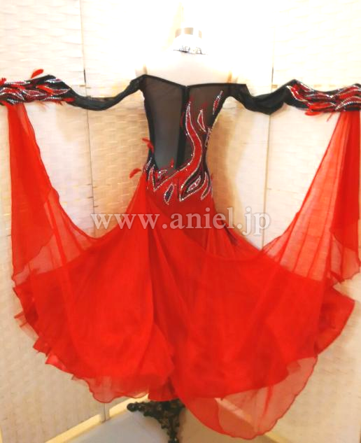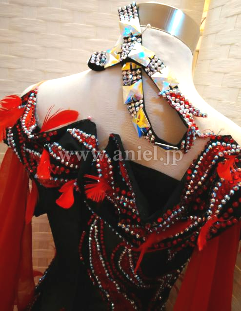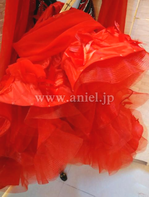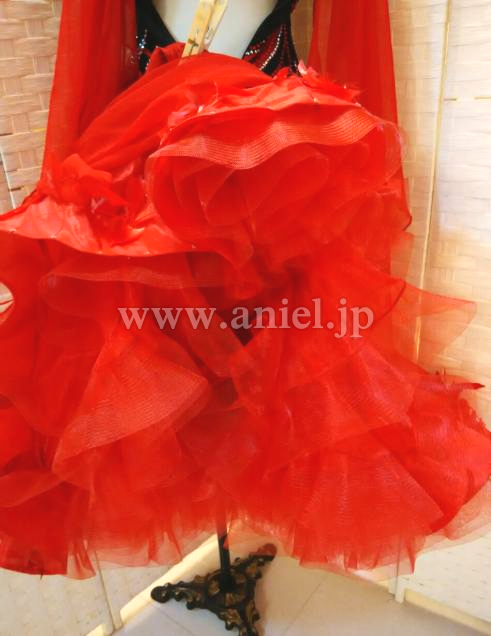 赤と黒のコンビネーションがストロングな印象のドレスです。