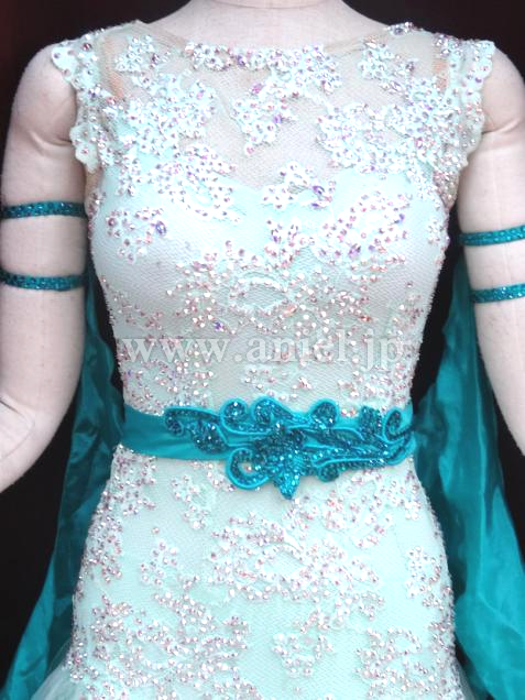 フロートやウエストのジェードのリボンの先にもさりげなくストーンがあしらわれています。