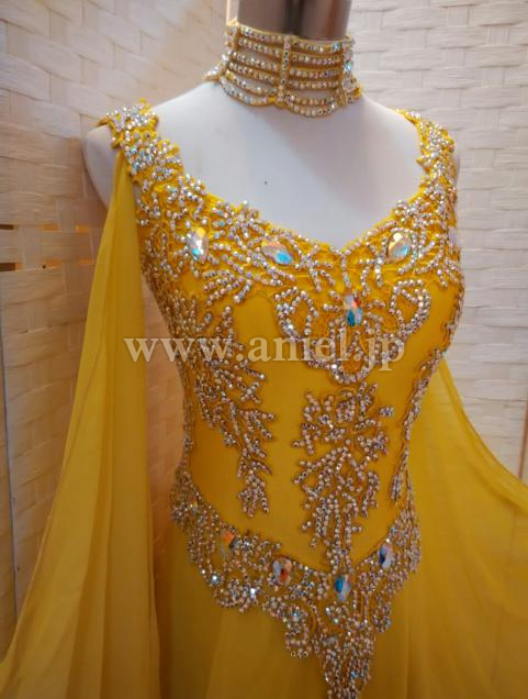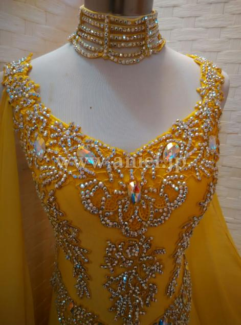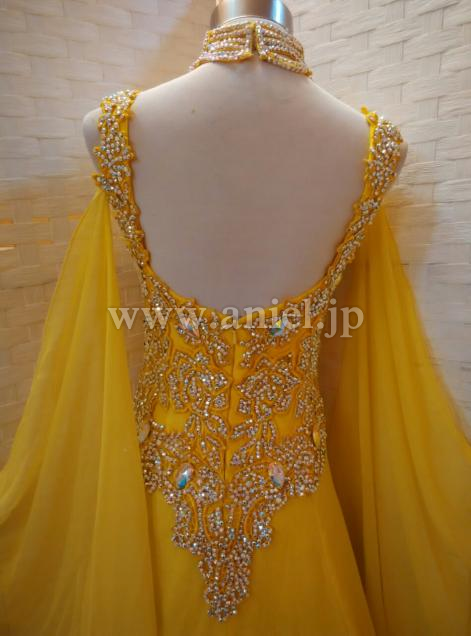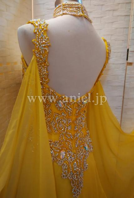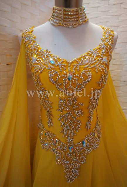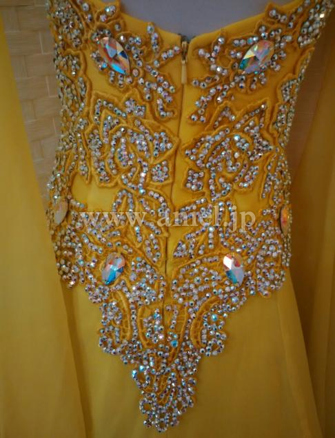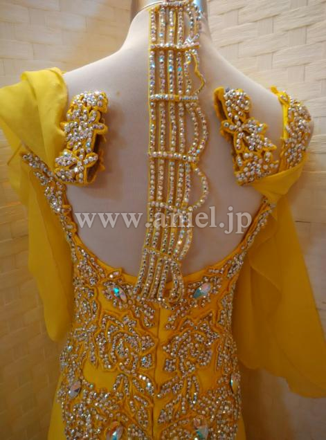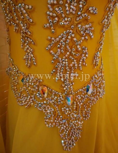 モチーフレースにスワロフスキーストーンがびっしり使われたゴージャスな装飾のドレスです。