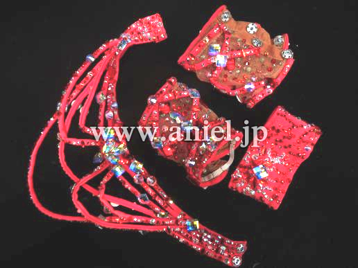 ネックレスと、二の腕のバンド、腕輪が二つ、ドレスバックが一緒に付きます。