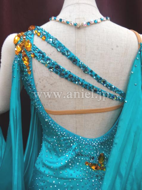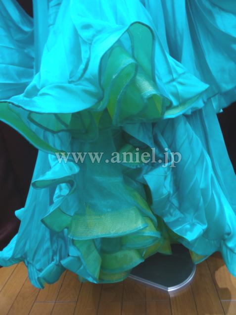 スカートとフロートにプリーツを使っているので大きく舞います。胸のインナーがブラ状になっているので胸を潰さずサポートします。現持ち主がクロッチを付け、チョーカーの石も増やしました。前持ち主の丈詰めでウエスト辺りにうっすらアタリが見えます。フロートの一部に薄い汚れがありますが気になりません。