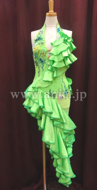 ホルターネックにアシンメトリーデザインのフリルで背を高く見せてくれます。