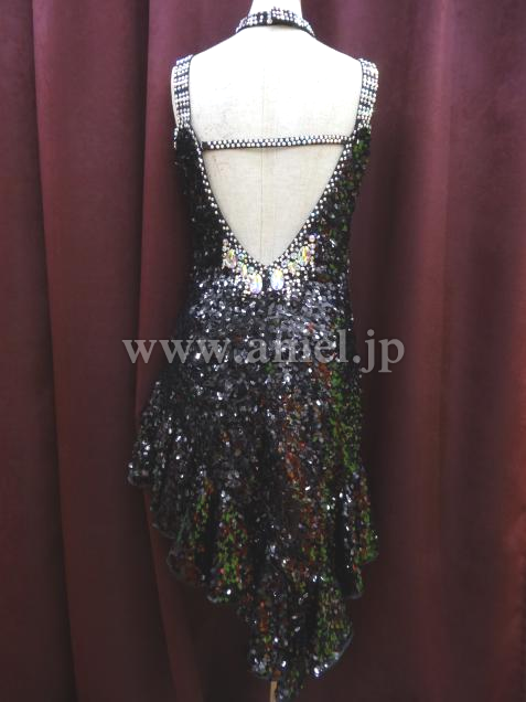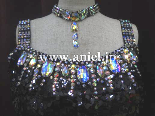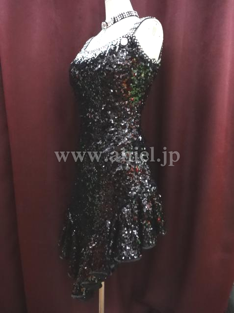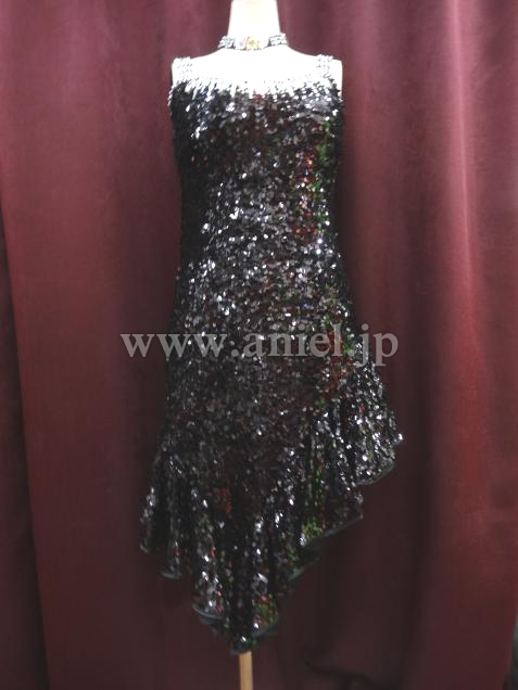 黒のスパンコールがとっても光輝くドレスで、スタイル良く見えます。すそも良く踊ります。付属のアームバンドとチョーカーが、かなり豪華です。