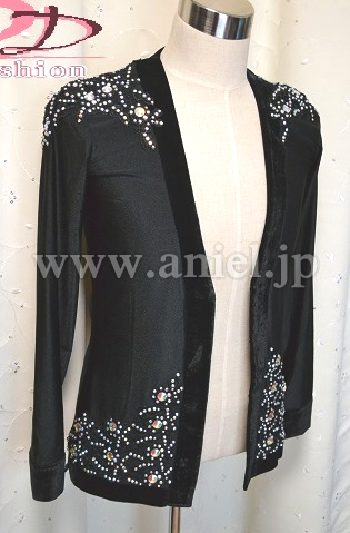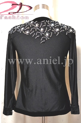 ボディーにフィットする着心地の良い光沢あり2wayライクラ生地を全体に使用し、襟と裾と袖の縁は高級感のあるベロアー生地で上品に仕上げ;