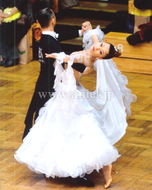 腰から肘のあたりにかけて、パールシフォンのウイングがつき、空気をはらんで大きく舞います。