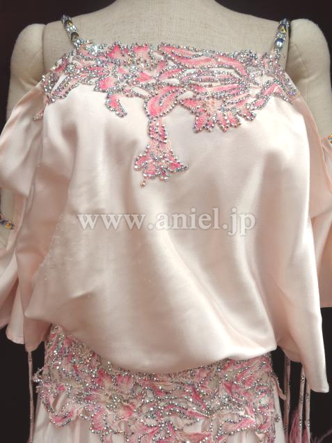 薄ピンクの上品な生地のドレスです。