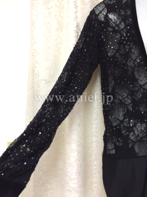 全体にラインストーンがちりばめられており、ゴージャスなラテンシャツです。