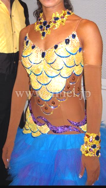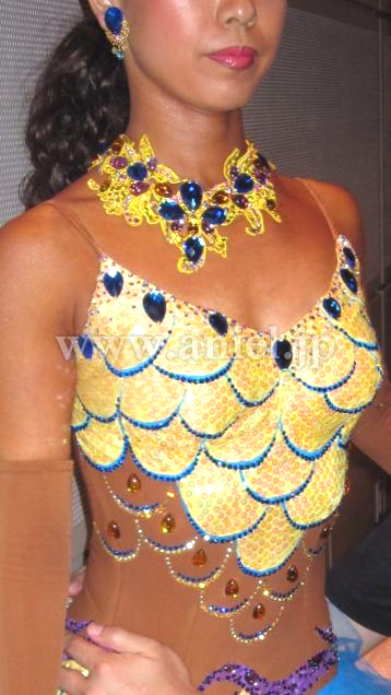 ストーンがたくさつ着いたチョーカーとイヤリング、腕輪、グローブ付き。