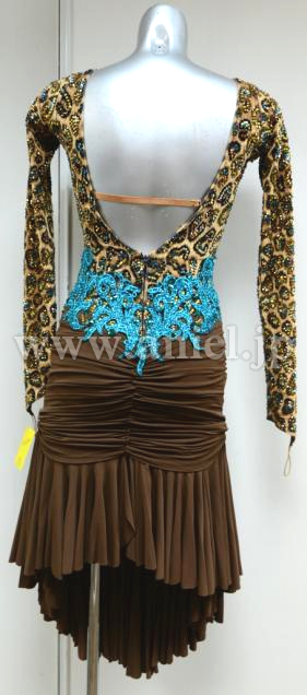 茶色のスカートに豹柄のボディがインパクトを出しながらも上品なドレスです。