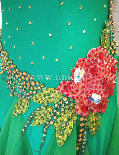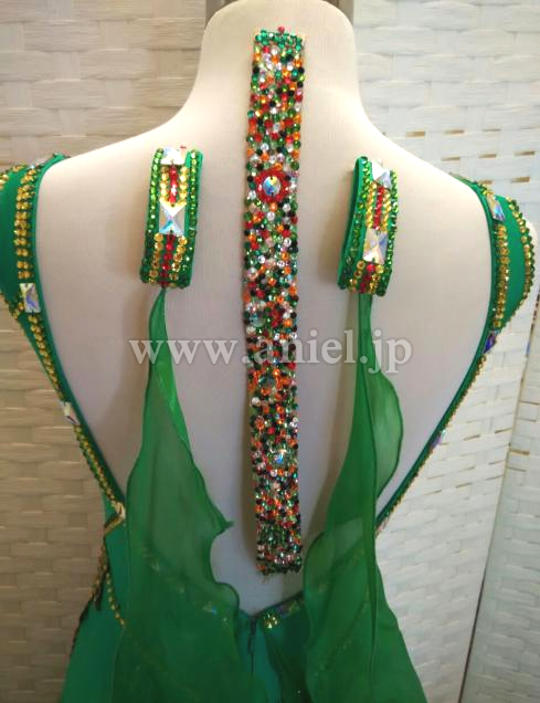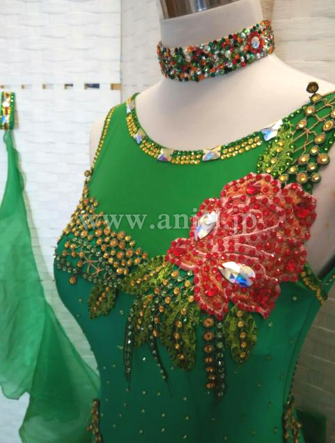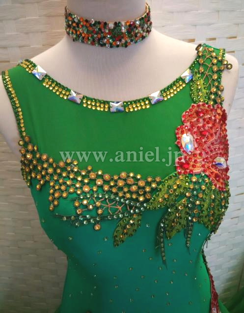 胸元とヒップに大きなフラワーモチーフが使われています。