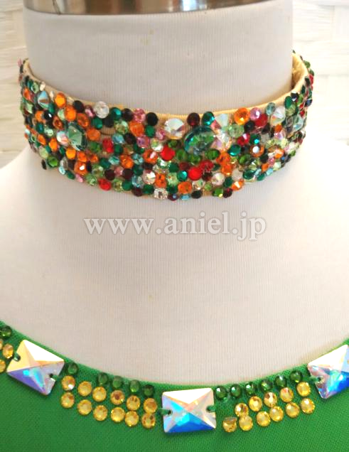 ネックレスや胸元、モチーフレースはスワロフスキーストーンで飾られています。
