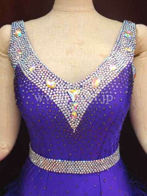 胸元から背中のライン、ベルトはストーンびっしりで華やかです。