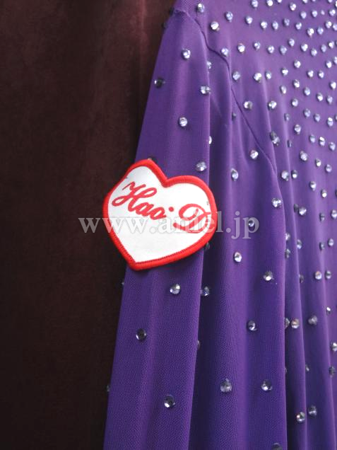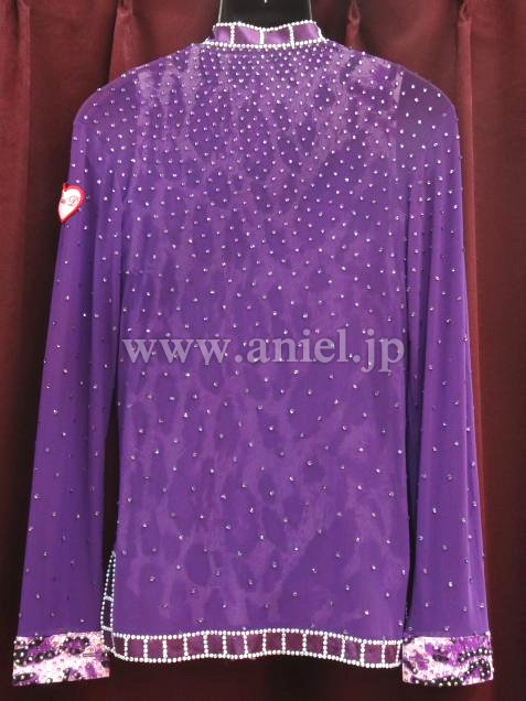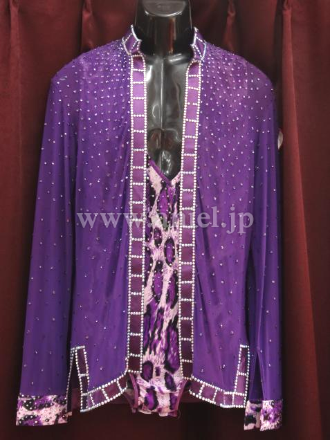 男性用のラテンシャツは紫の豹柄をポイントとして使用しています。