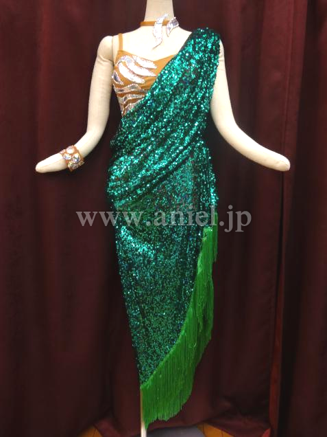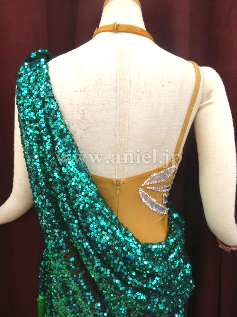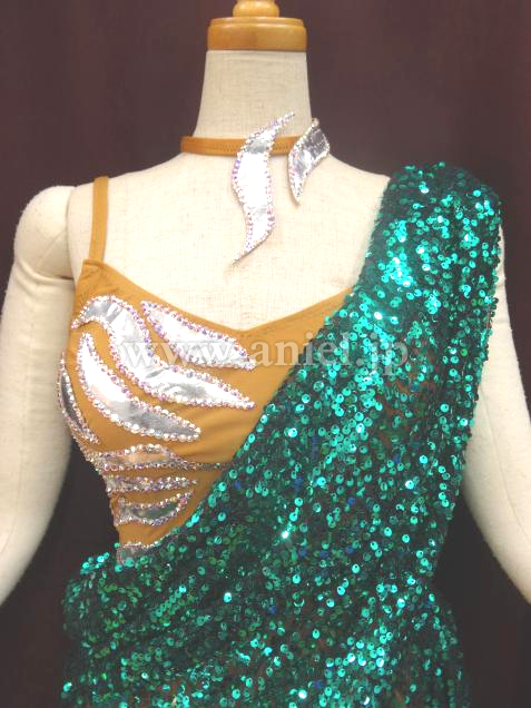模様部分には、シルバーの生地の上にスワロフスキーが使われています。