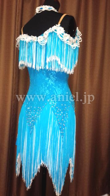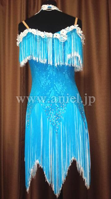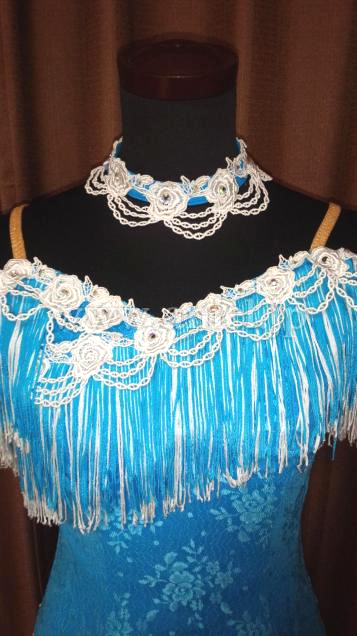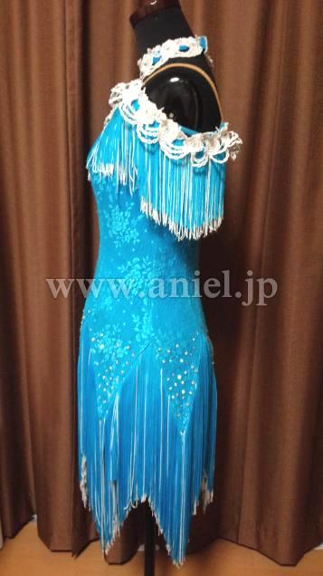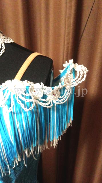 フリンジの袖が肩にかかり、オフショルダーのデザインになります。
