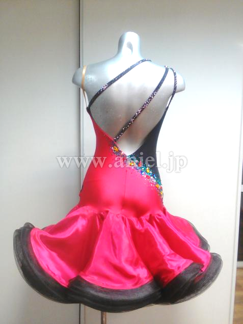 赤と黒のアシンメトリーデザインのドレスです。