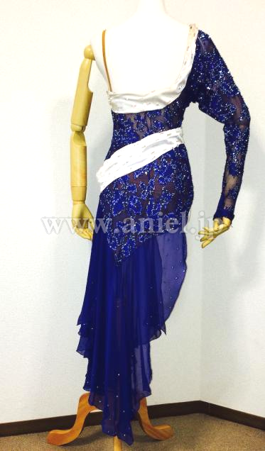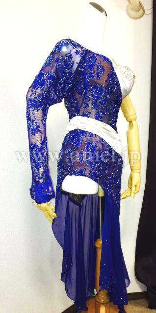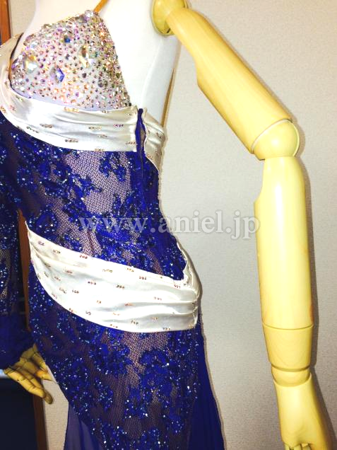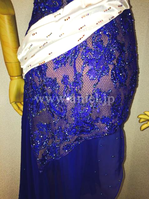 オーガンジーの裾は良く踊ります。形もとても綺麗で体のラインを良く見せてくれます。スワロフスキー使用(全てではありません)