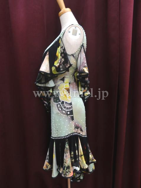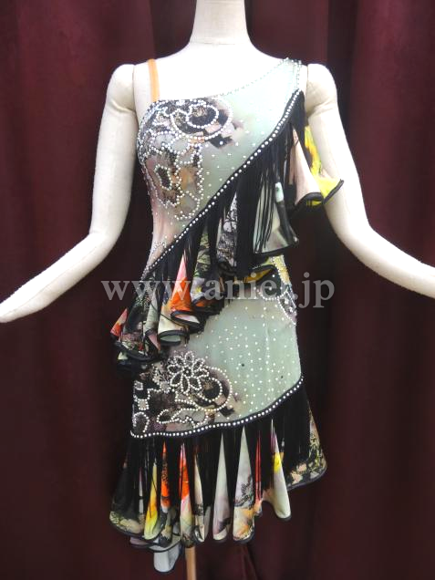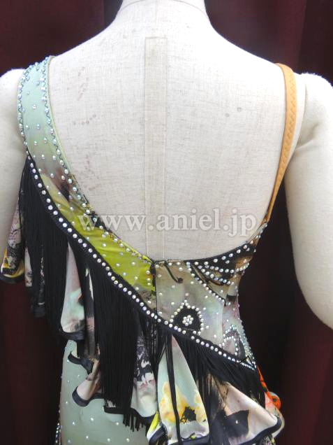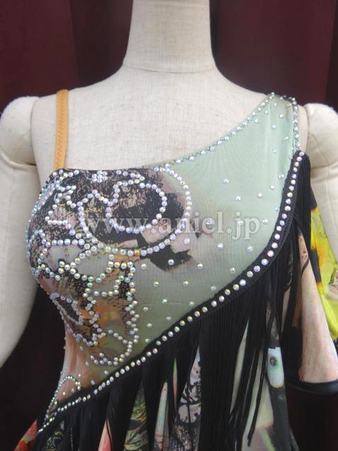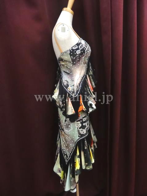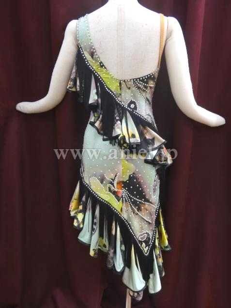 斜めのフリルにフリンジがついた、動きが見えやすいドレスです。