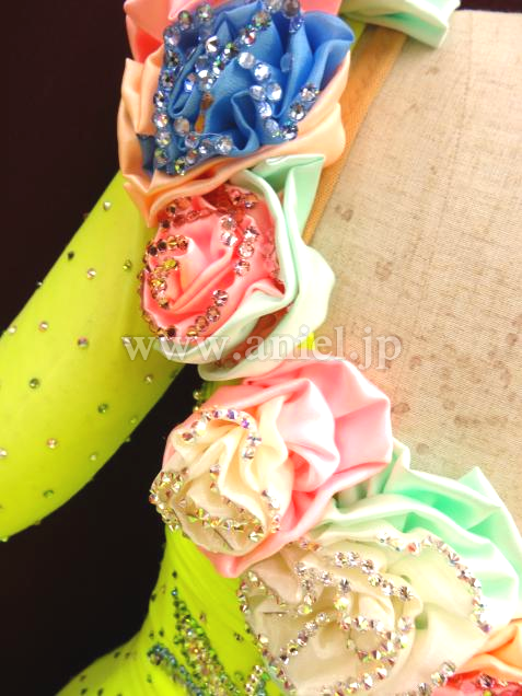 腰あたりから、柔らかい友布で左右に分かれ手首にスパンコールのついた腕輪で留めるようになってます。