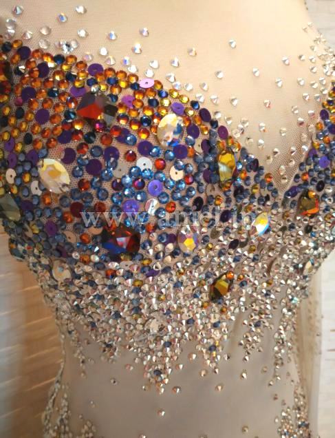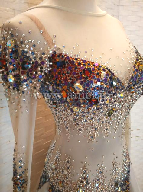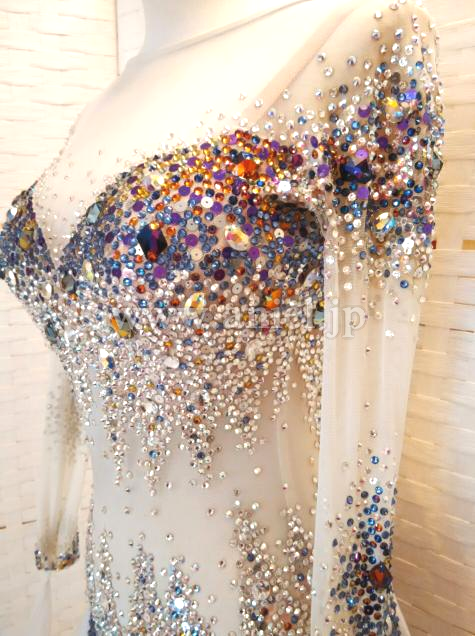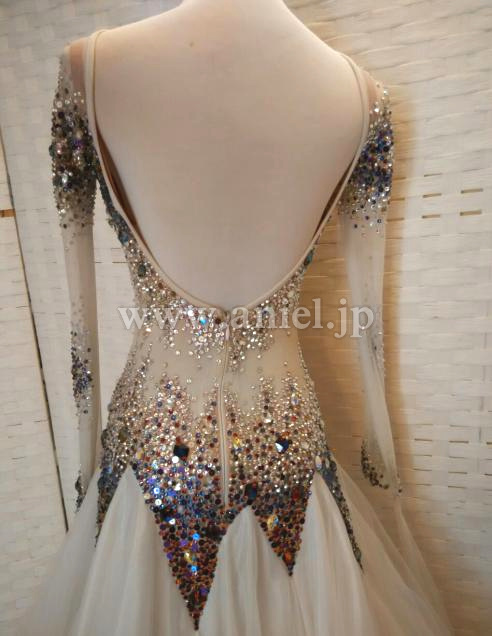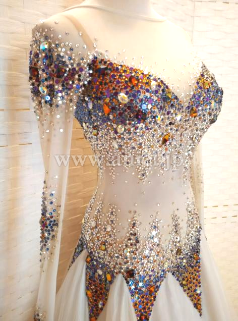 ボディから袖まで、スワロフスキーを沢山使用して装飾しています。